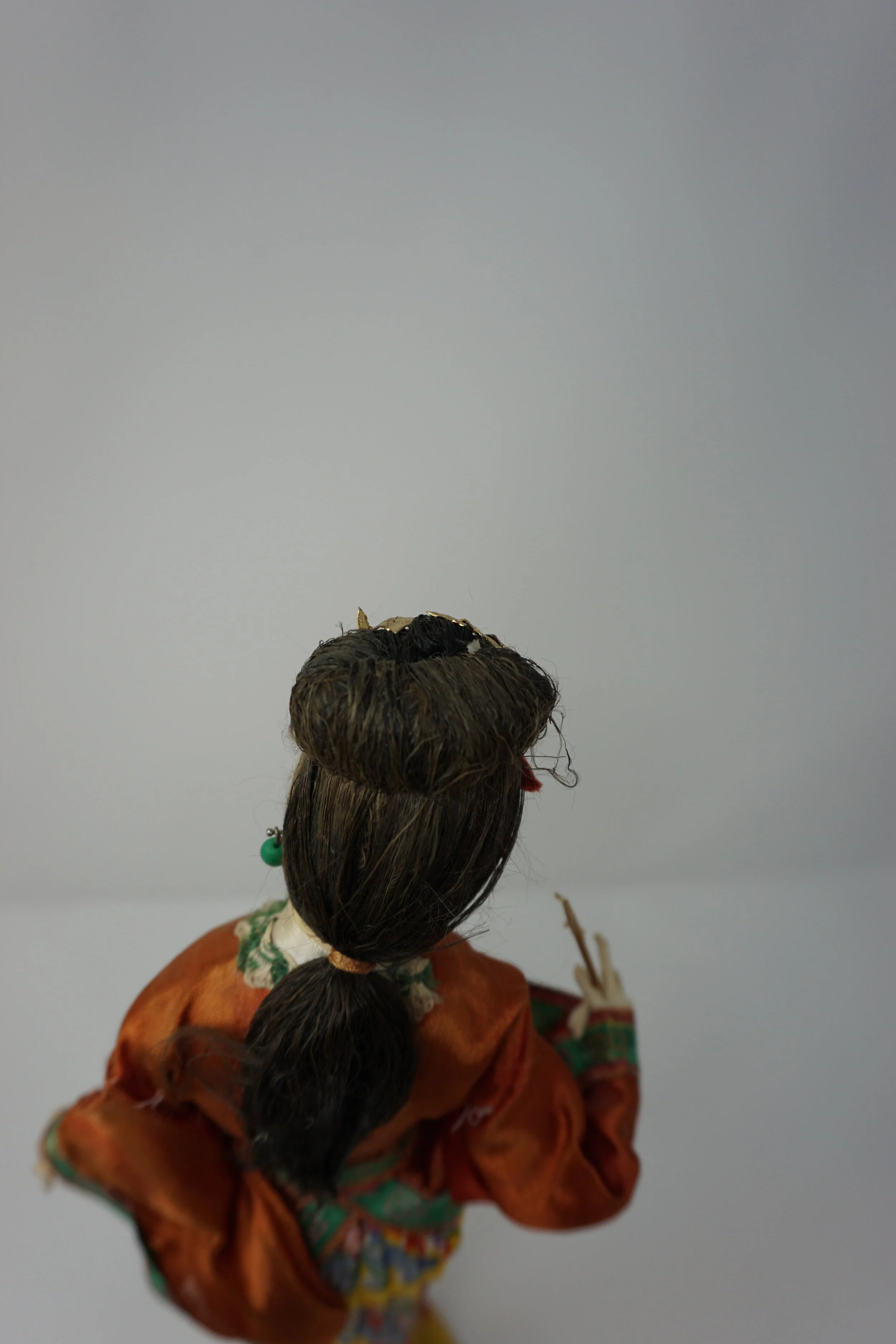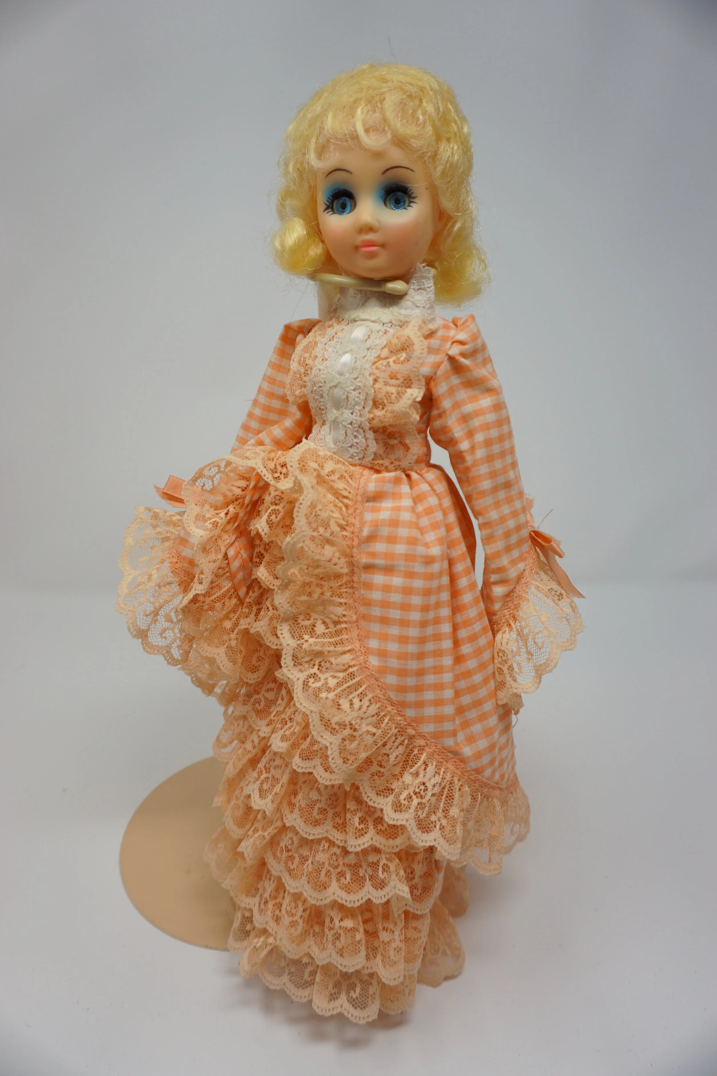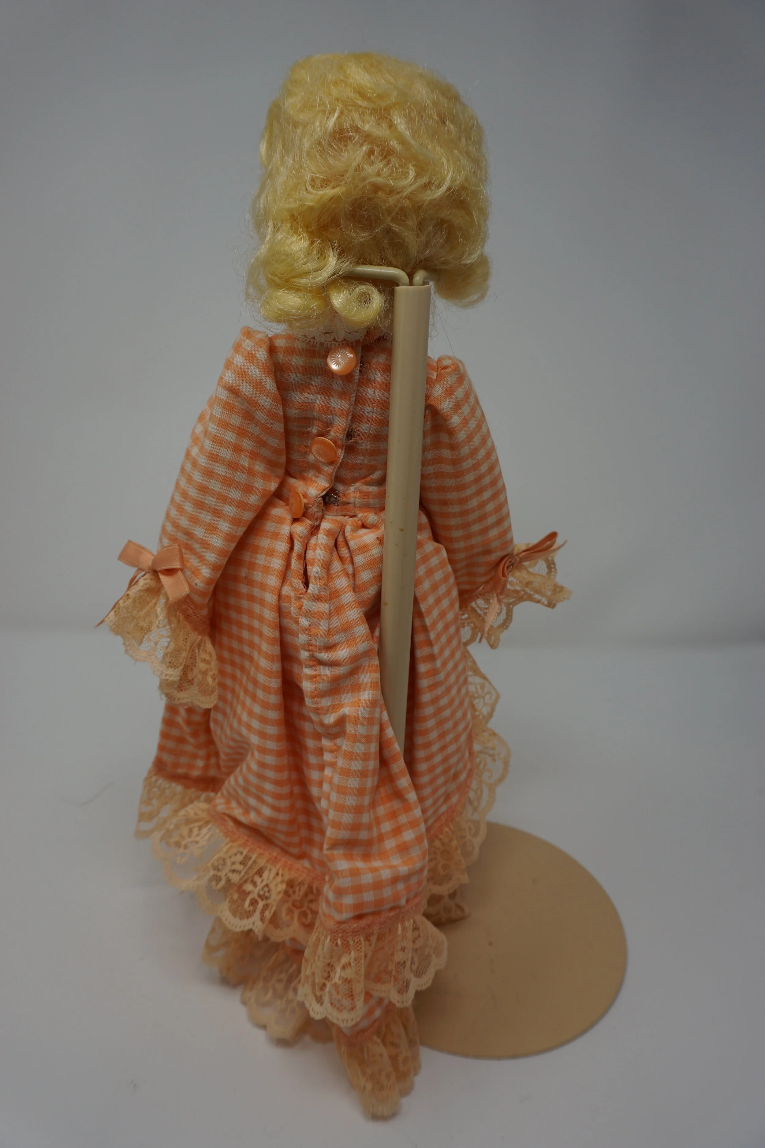 Orange Ruffle Dress 1800's Plastic Blue eyed doll blond hair
