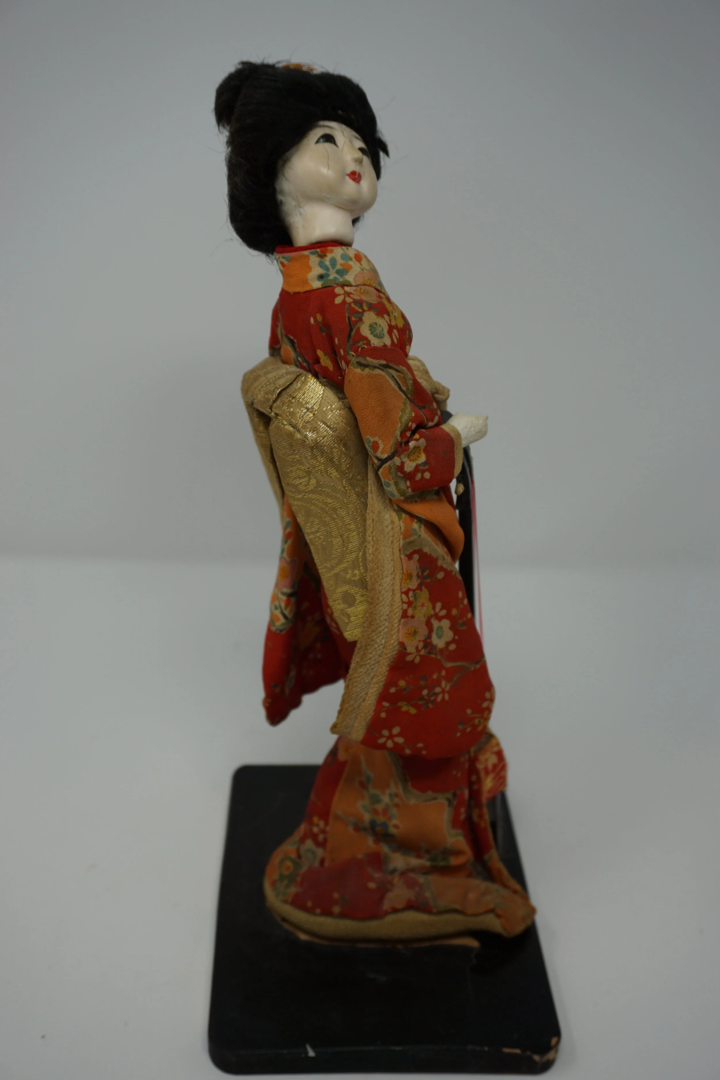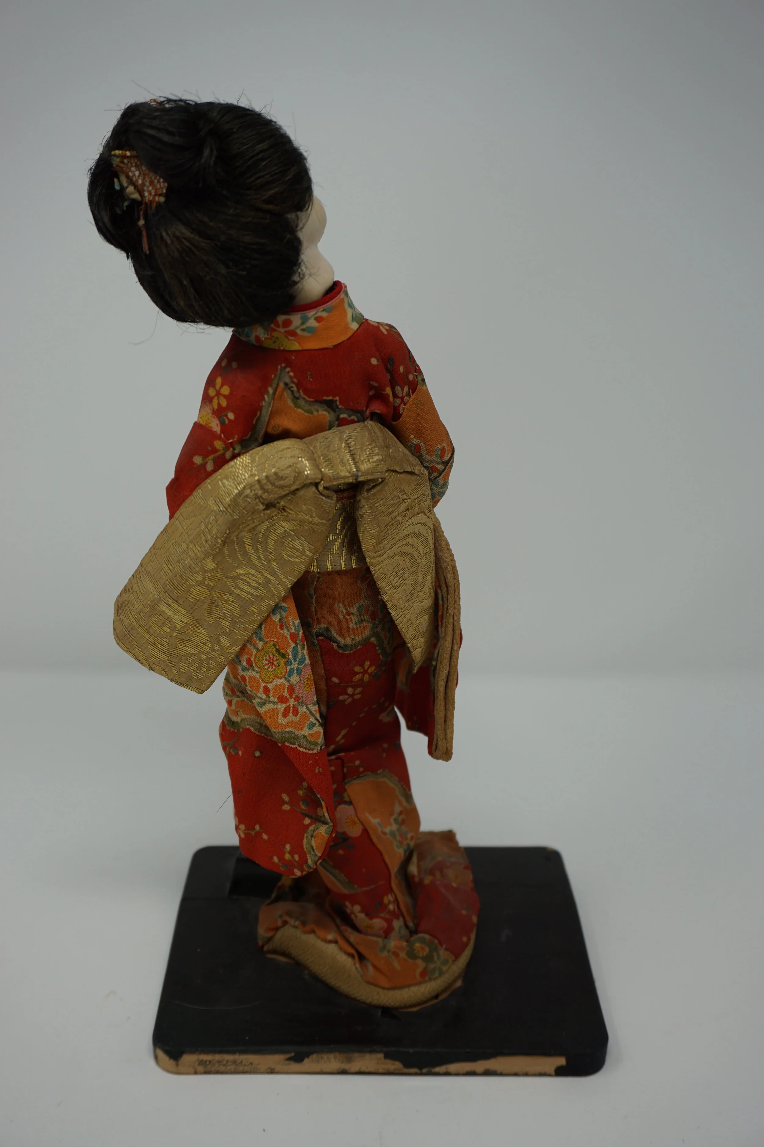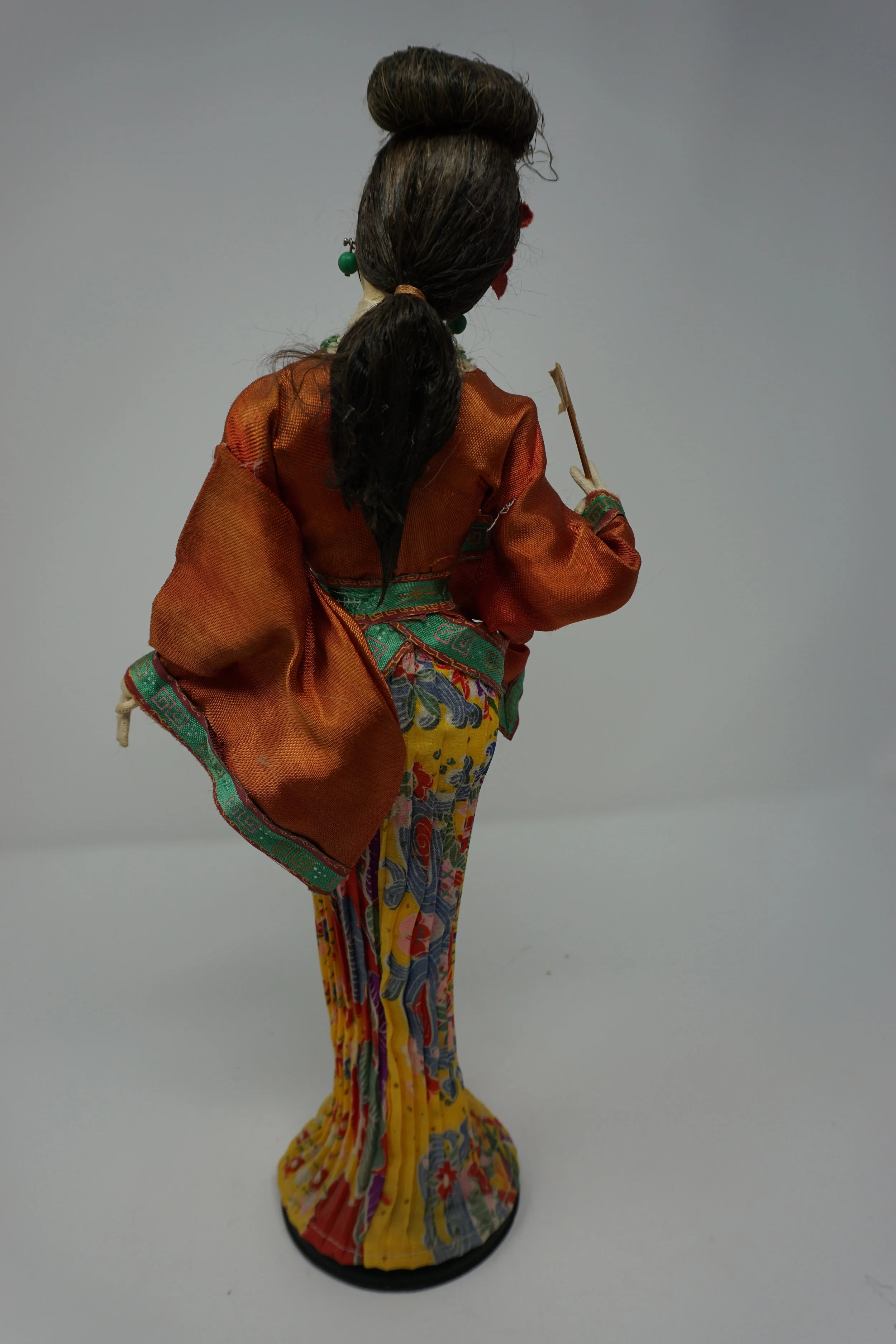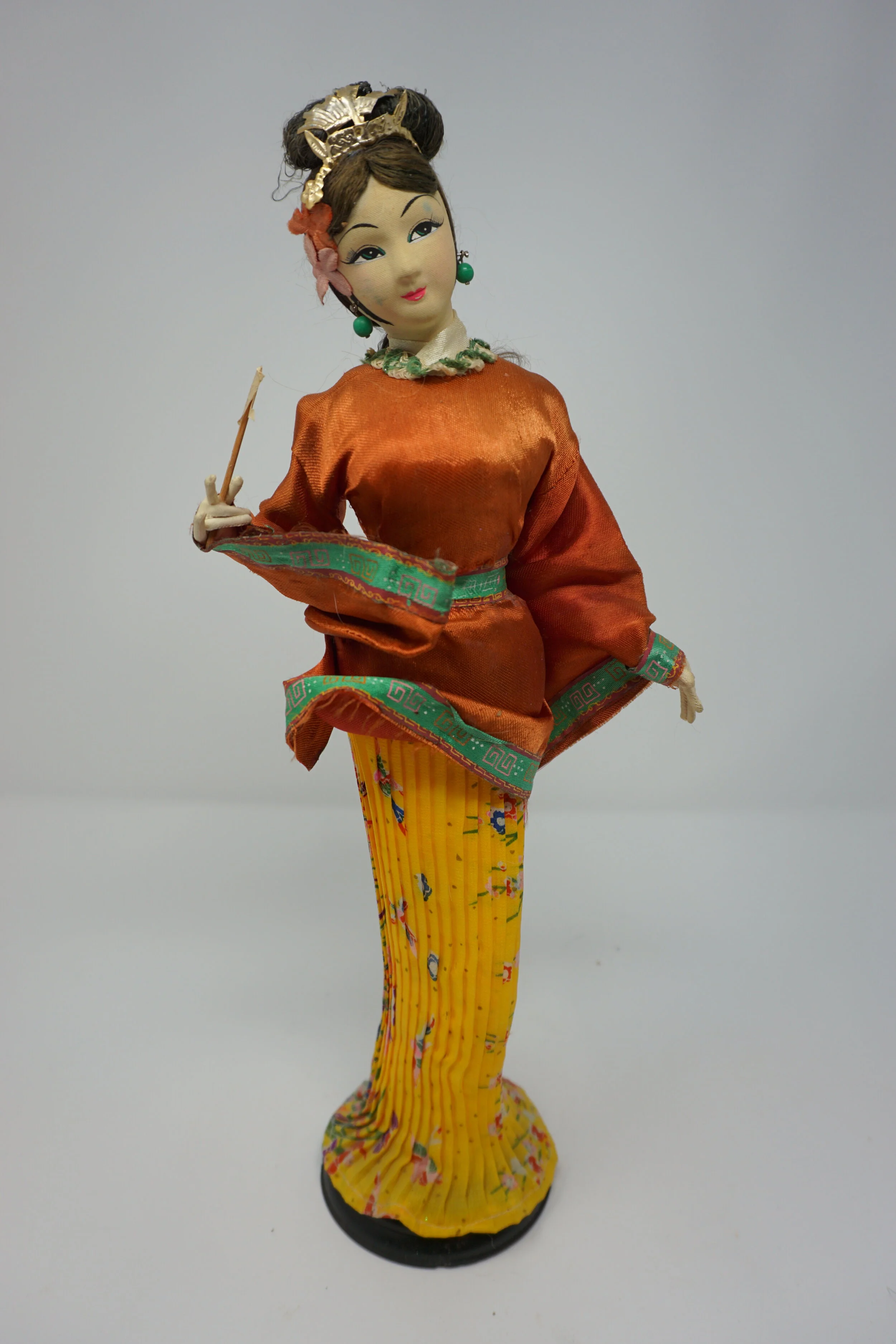 Orange Ruffle Dress 1800's Plastic Blue eyed doll blond hair